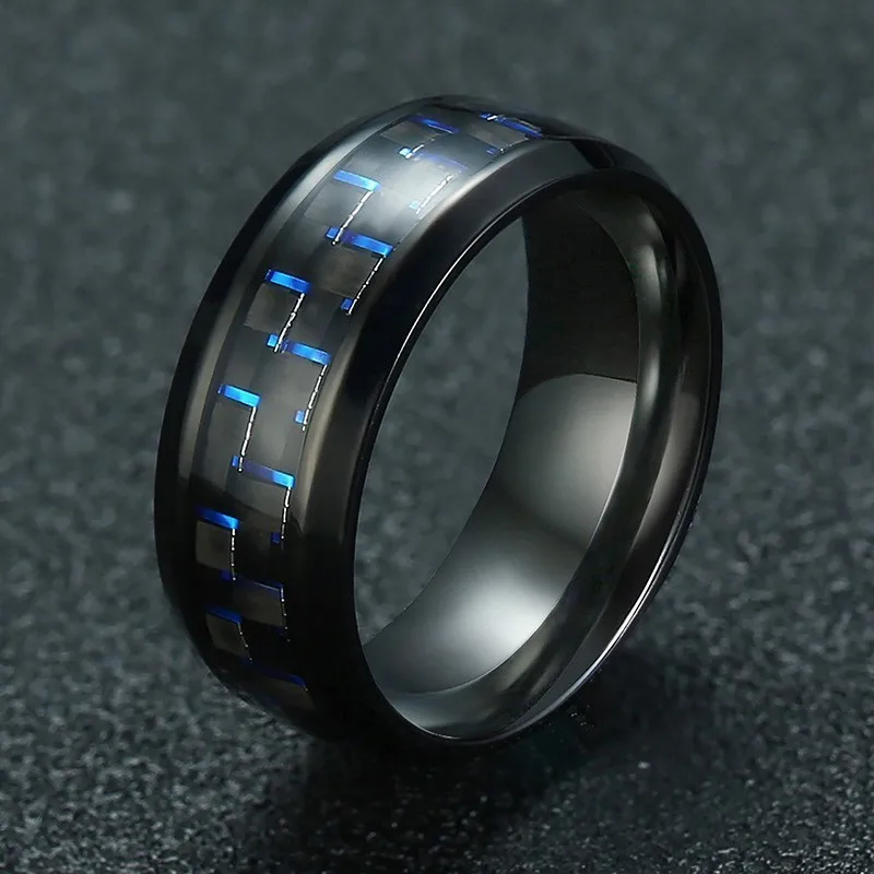 Blue/Black Carbon Fiber Inlay Ring For Men Stainless Steel ...