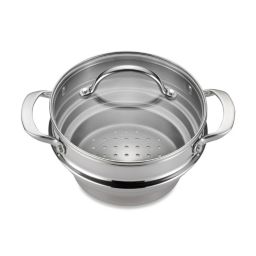 Steam vegetables, dumplings and more like a professional with this steamer insert. Made of durable stainless steel, this sophisticated universal style fits both tulip and straight-sided models of 2-qt., 3-qt. and 4-qt. cookware. A shatter-resistant glass lid provides a snug fit to seal in heat and moisture while allowing easy monitoring of food while it cooks, and the dual-riveted handle ... Read Content